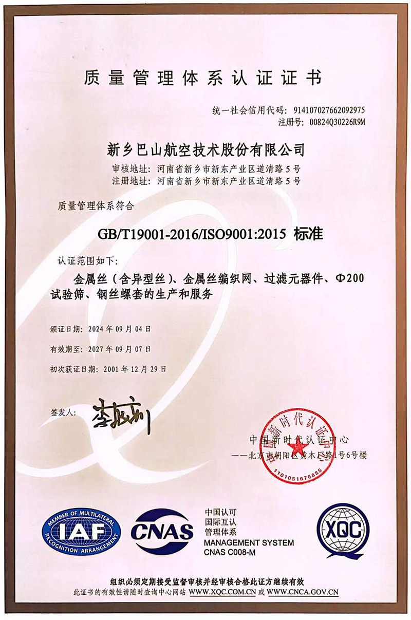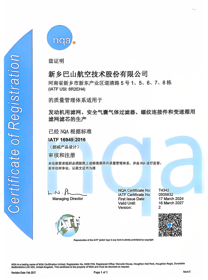 巴山嚴格執行國際質量標準,通過多項體系認證