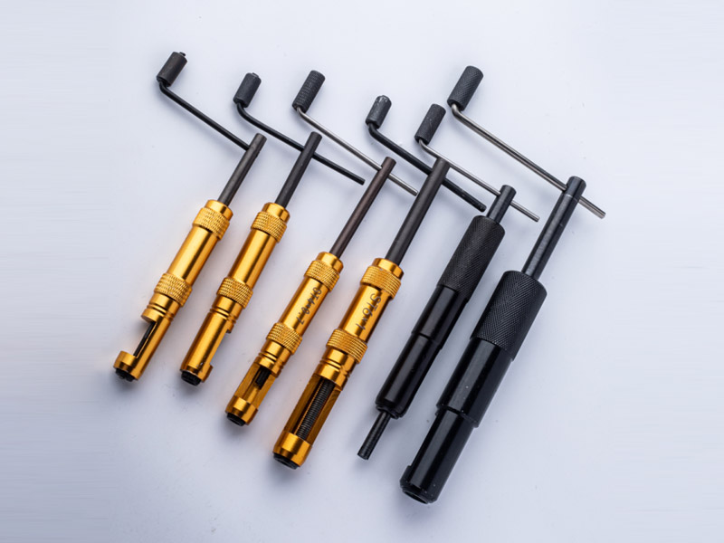 一般情況下可用手動安裝扳手進行安裝。將鋼絲螺套放入安裝扳手中,使螺套安裝柄嵌入導桿,旋轉手柄,使螺套在拉緊狀態下沿螺紋旋入螺孔,確保螺套頂端低于工件表面 0.75–1.5P,預留空螺紋圈。少量安裝或 M14×2 以上粗牙螺套也可采用“T”型開槽工具或簡易螺紋頭工具安裝。注意勿對螺套安裝柄施加過大軸向力,以避免“亂扣”。當在流水線或需批量快速安裝時,可采用氣動或電動半自動安裝扳手,以獲得高效率、穩定可靠的安裝效果。安裝完畢后應采用相應等級的塞規檢查所形成的標準螺紋精度。